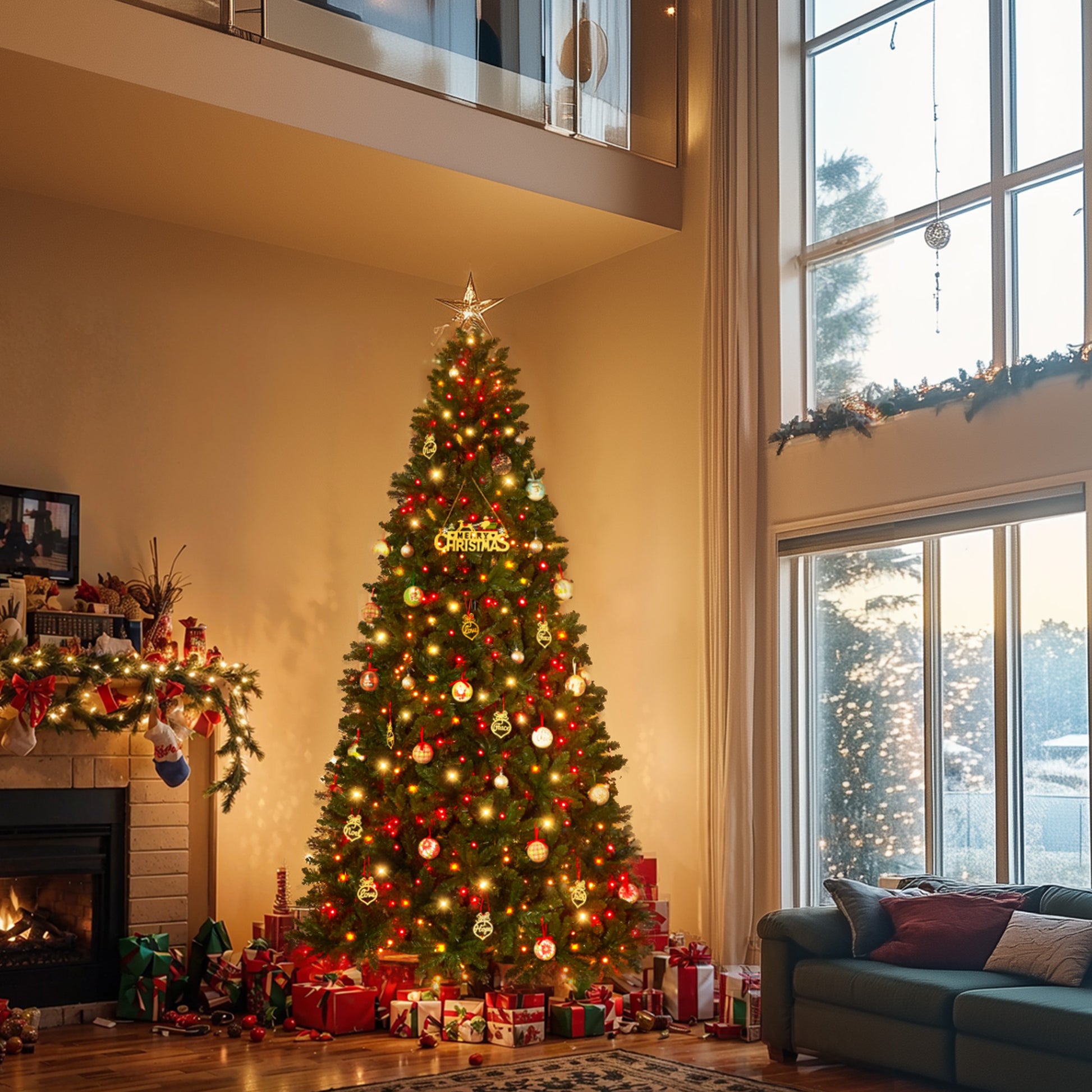 - 【Lush, Full Branches】With 3993 lifelike branch tips, this Christmas tree offers a rich, full look that instantly brings holiday charm to your home. Pre-strung with 1100 LED lights, it eliminates the hassle of dealing with tangled cords, allowing you to jump straight into decorating with your favorite ornaments and garlands for a truly festive display