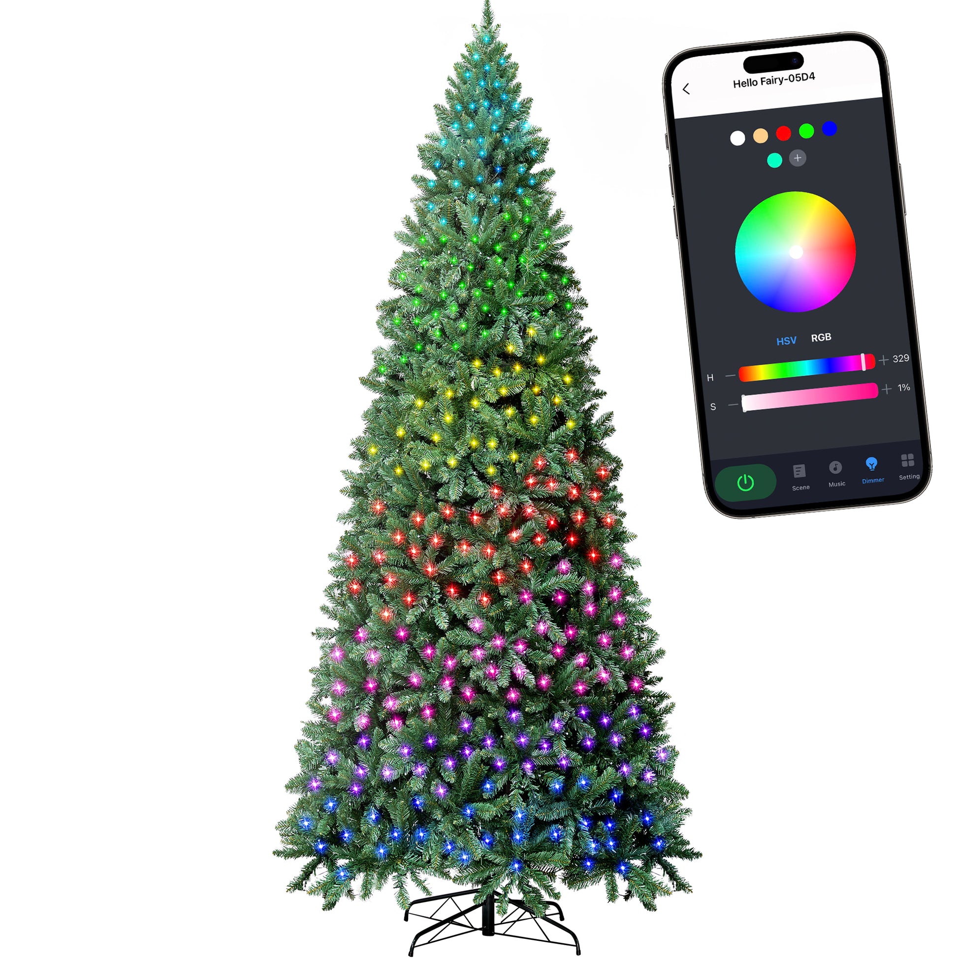 - 【Vibrant Holiday Lights】This 12ft artificial Christmas tree comes with 1100 full-spectrum LED lights, it delivers a rich and vibrant display far beyond the traditional single-color or tri-color trees. Easily controlled via the app - Hello Fairy. It offers features like music sync and countdown. You can also DIY your own custom light patterns and add favorites to loop. Imagine creating your personal holiday light show with unlimited designs, each reflecting your mood and the joy of the holiday