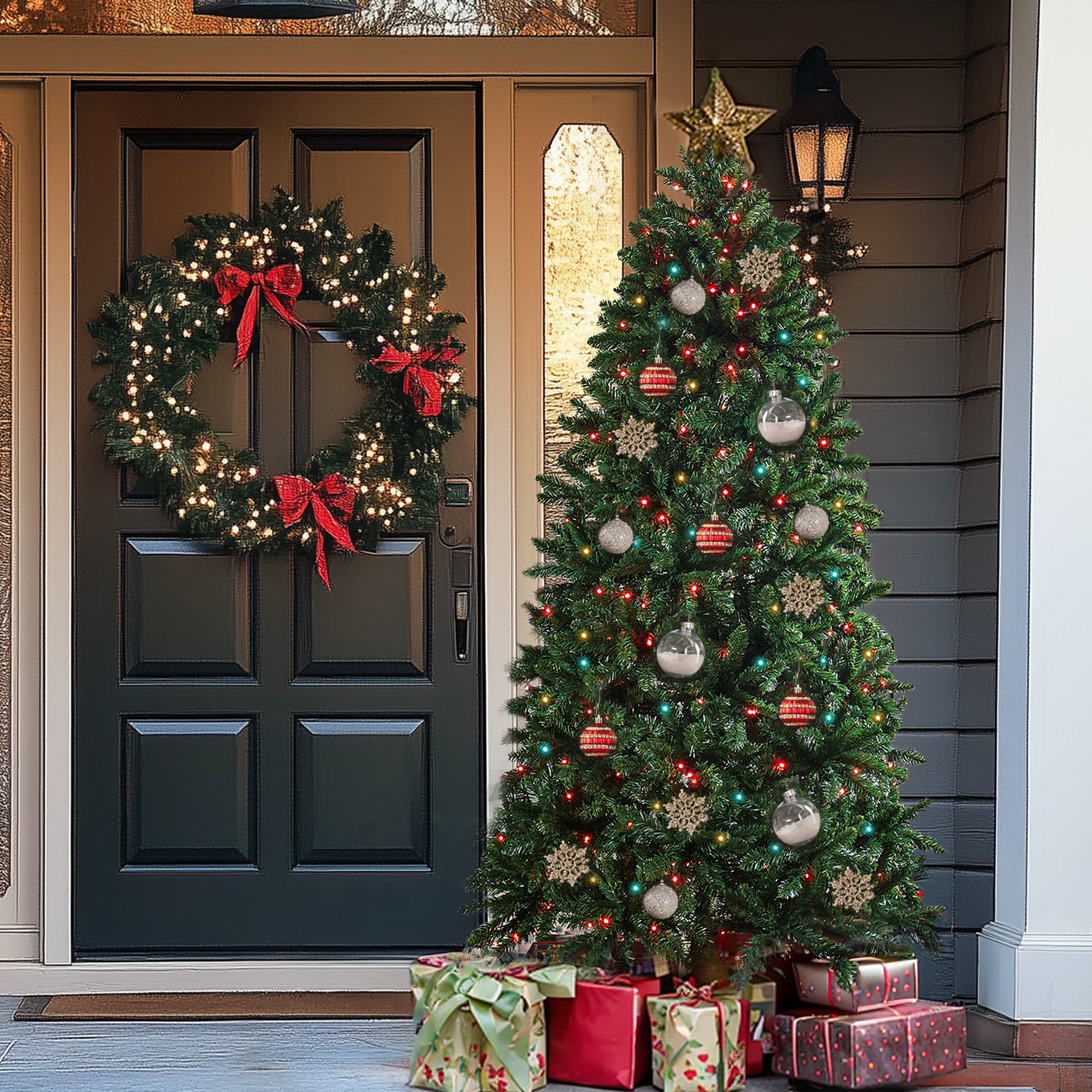 【Built for Years of Holiday Cheer】This artificial christmas tree with lights is built to stand the test of time. Crafted with durable metal hinges and flame-retardant PVC branches, it stays as strong as your holiday traditions. Supported by a robust metal base, you can count on this tree to bring joy for many Christmases to come
