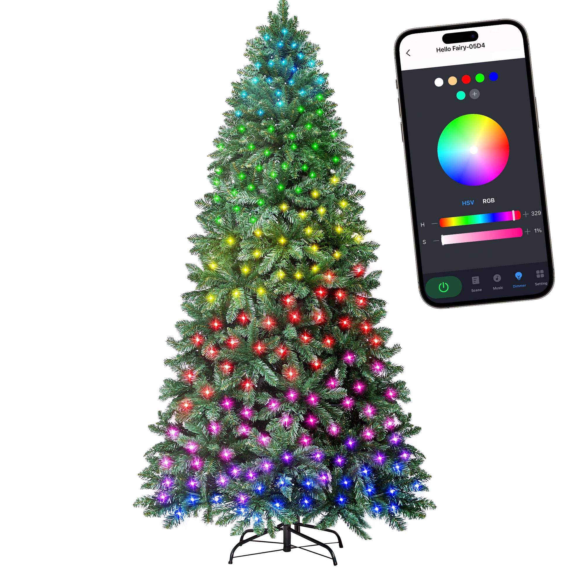 - 【Vibrant Holiday Lights】This 7.5ft artificial Christmas tree comes with 400 full-spectrum LED lights, it delivers a rich and vibrant display far beyond the traditional single-color or tri-color trees. Easily controlled via the app - Hello Fairy. It offers features like music sync and countdown. You can also DIY your own custom light patterns and add favorites to loop. Imagine creating your personal holiday light show with unlimited designs, each reflecting your mood and the joy of the holiday