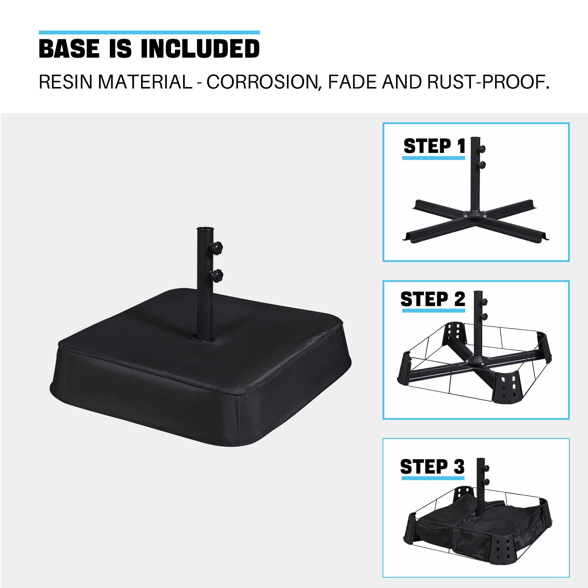 - [Base Are Included]: Made from resin material, the umbrella base is corrosion, fade and rust-proof. Comes with a durable metal frame, cloth cover and 2 sandbags. Note: Fill each sandbag with 66 pounds to ensure stability