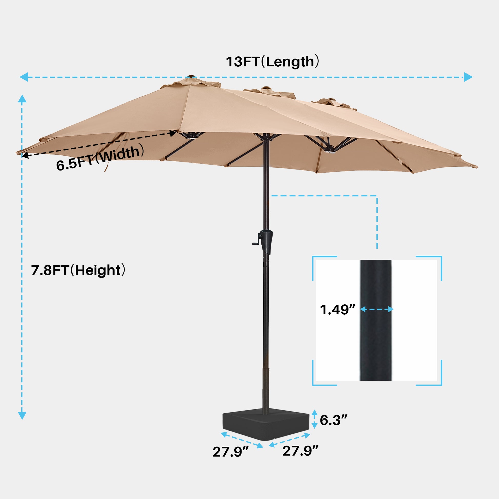 SUPERJARE 13FT Outdoor Patio Umbrella with Base Included, Double Sided Pool Umbrellas with Fade Resistant Canopy, Large Table Umbrella for Deck, Market, Backyard-Beige
