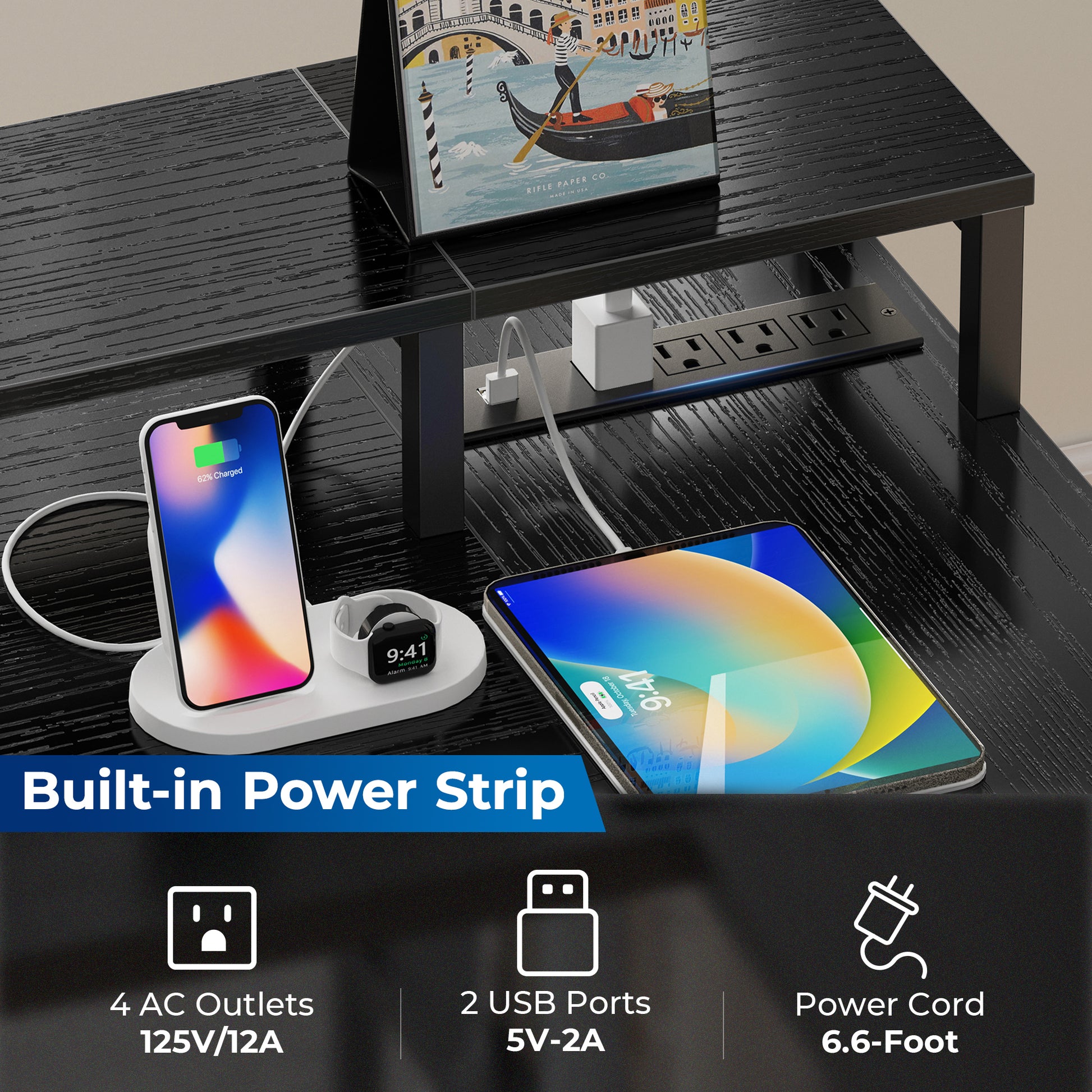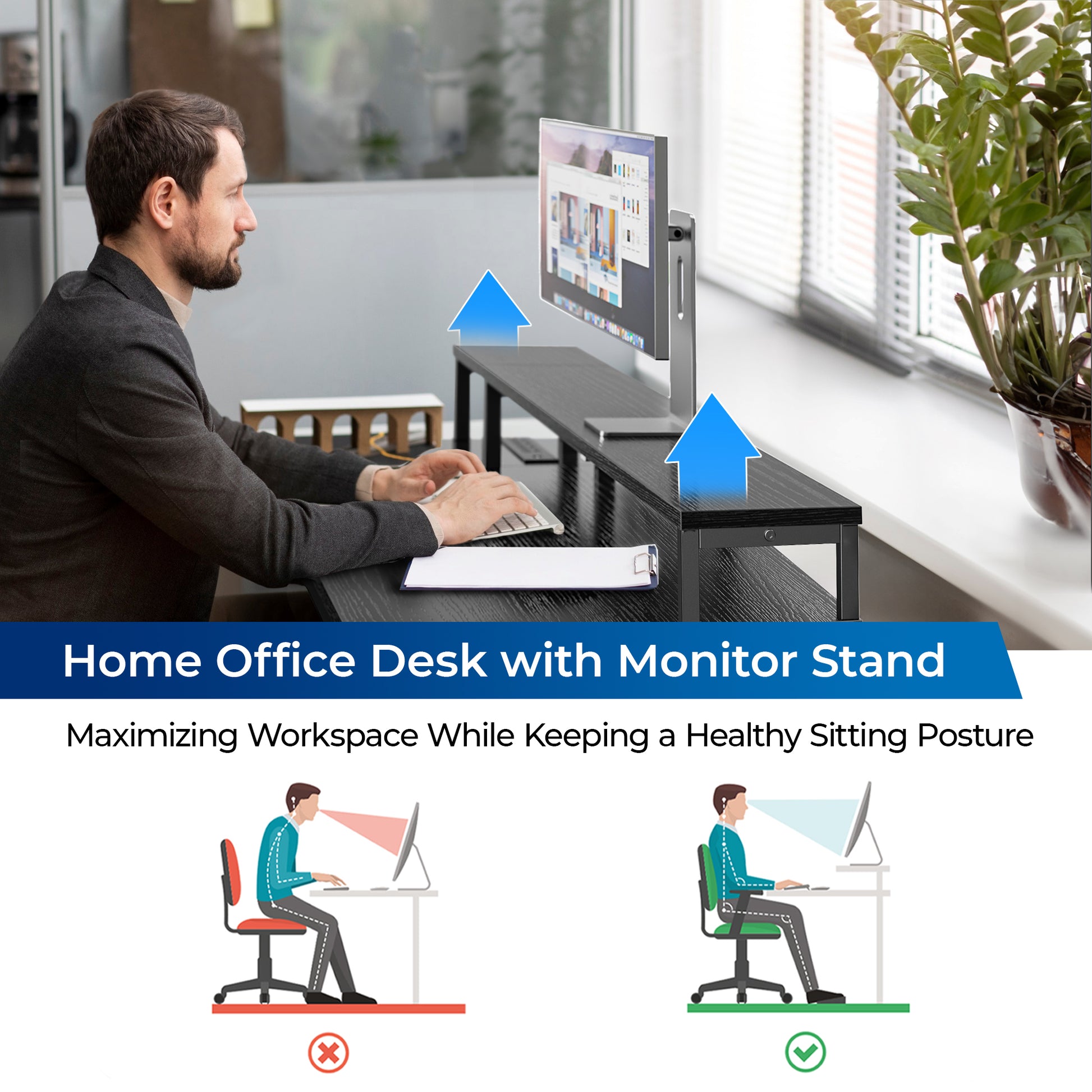 - 【POWER STRIPS & MONITOR SHELF】This computer desk is equipped with 4 Standard Plug Outlets & 2 USB Ports, which can easily charge phones laptops, gaming gear and other office devices. Monitor stand on the desktop elevates your line of sight, allowing you to maintain proper sitting posture and protect your cervical and spinal health.