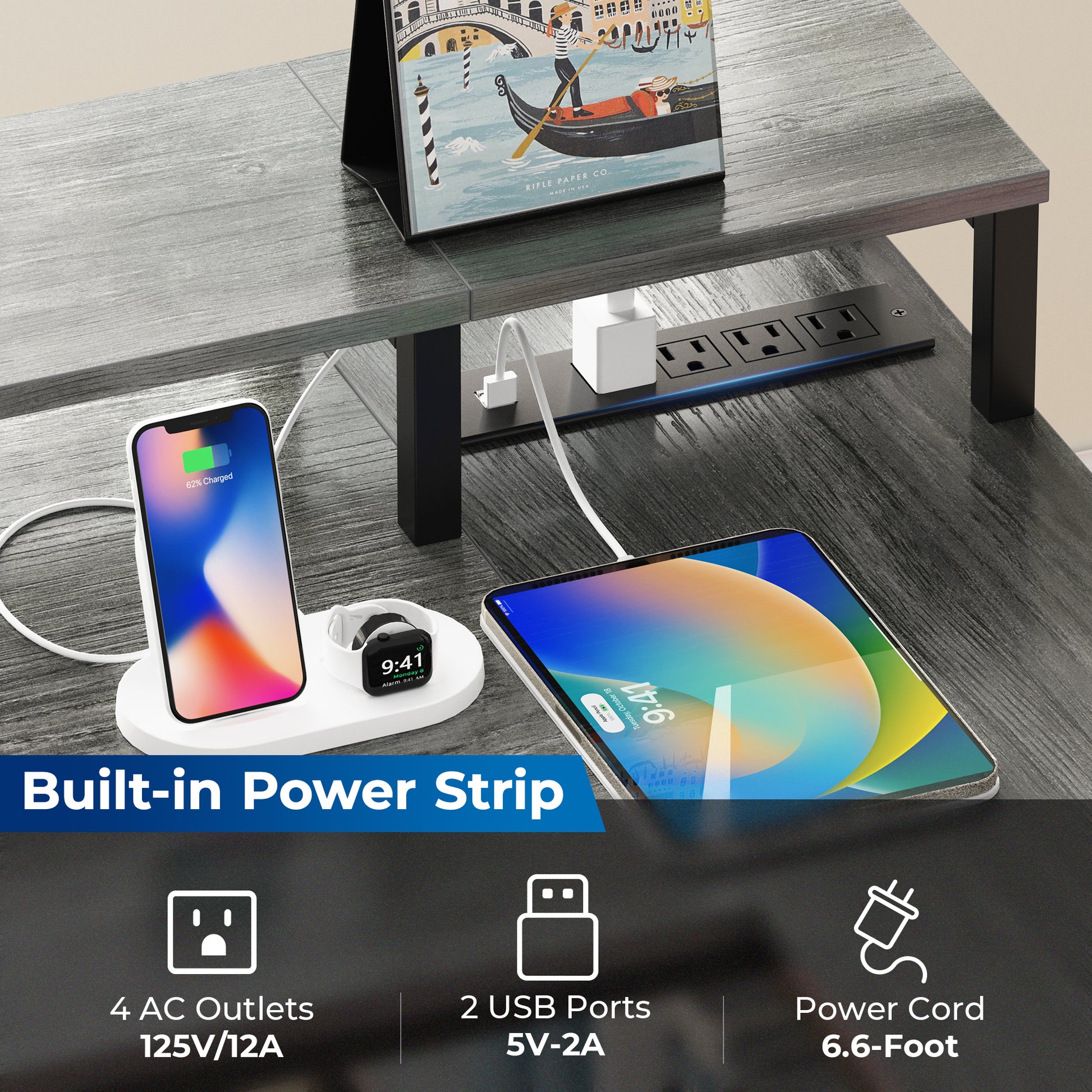 - 【POWER STRIPS & MONITOR SHELF】This computer desk is equipped with 4 Standard Plug Outlets & 2 USB Ports, which can easily charge phones laptops, gaming gear and other office devices. Monitor stand on the desktop elevates your line of sight, allowing you to maintain proper sitting posture and protect your cervical and spinal health