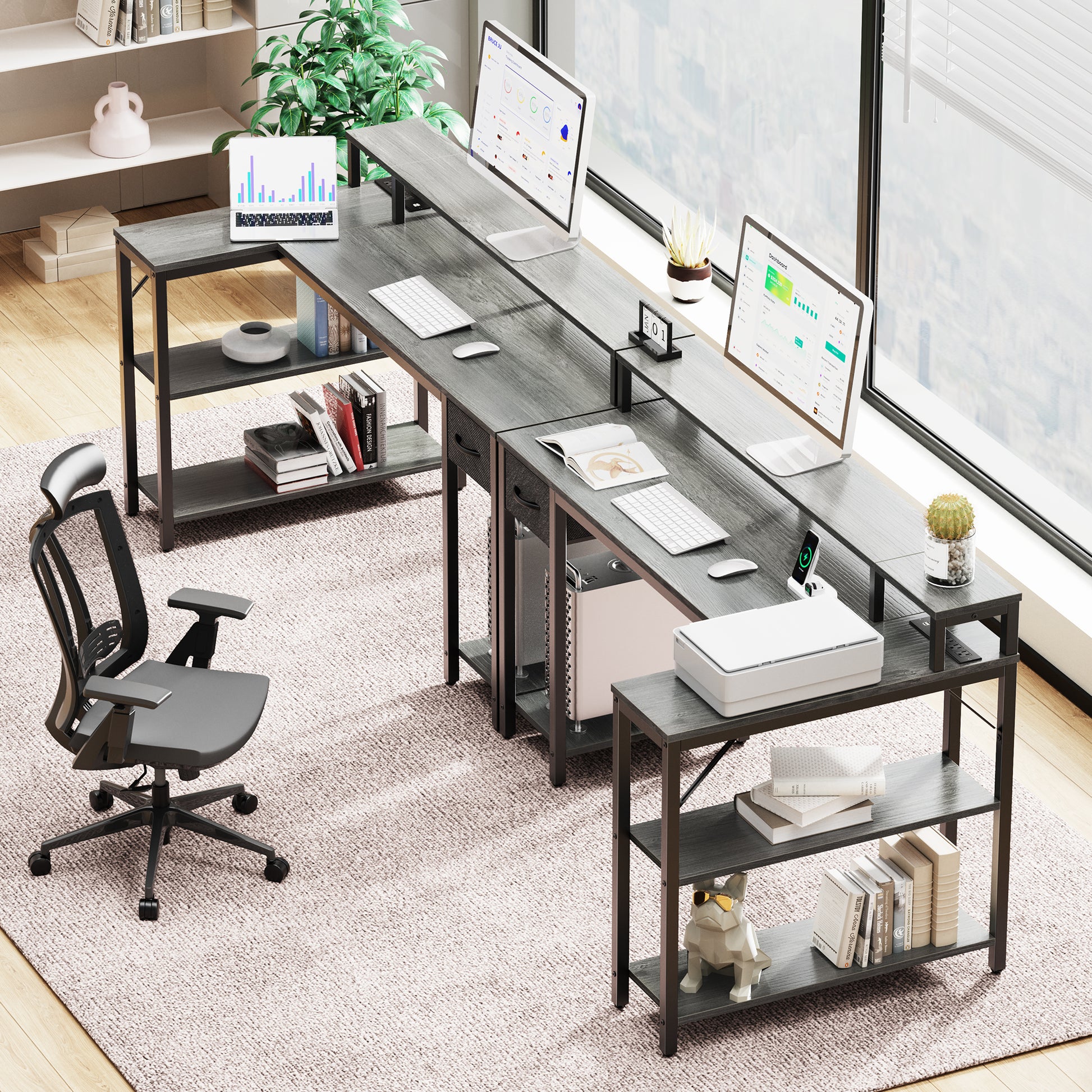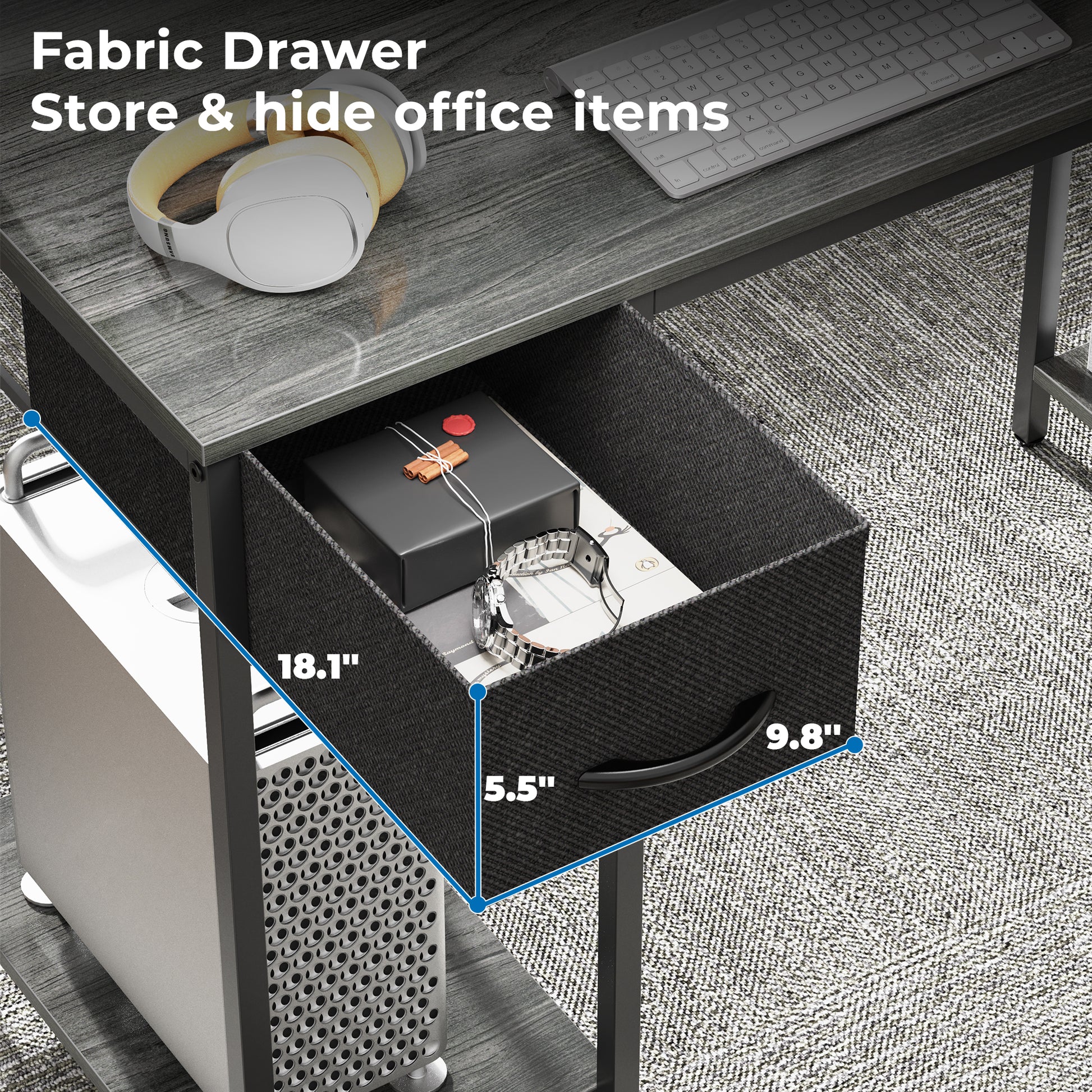 - 【DESK WITH STORAGE】The desktop and 2 storage shelves on the side allow you to store unlimited office supplies. The pc tower can be placed on the bottom shelf and there is a fabric drawer to store stationery and other privacy items. Super practical design
