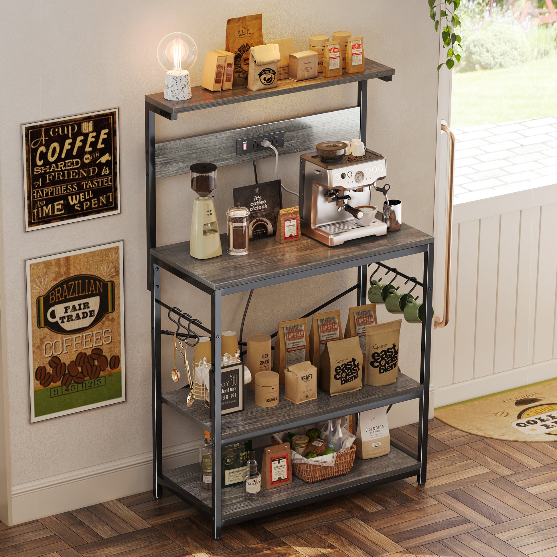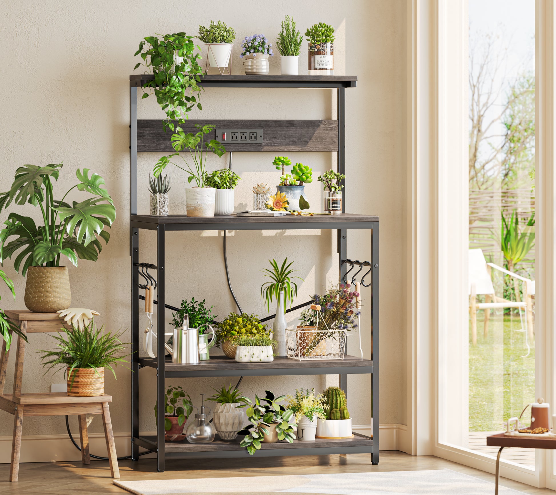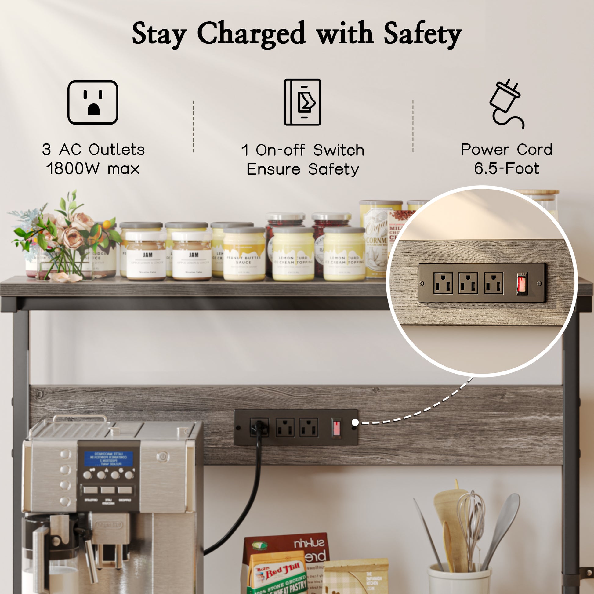 - 【Bakers Rack with Power Outlets】Imagine brewing your morning coffee with the coffee machine, blender, or kettle plugged right into the kitchen rack with 3 outlets and 1 safe switch. No more reaching behind heavy appliances and making every kitchen task easier and your counters clutter-free