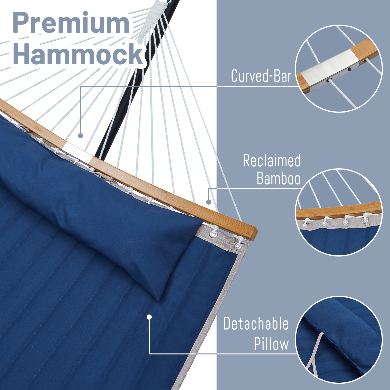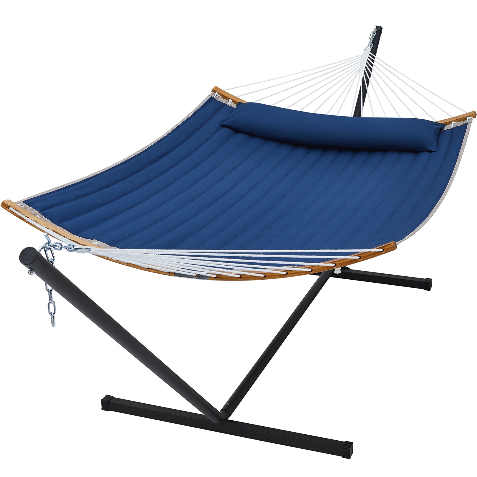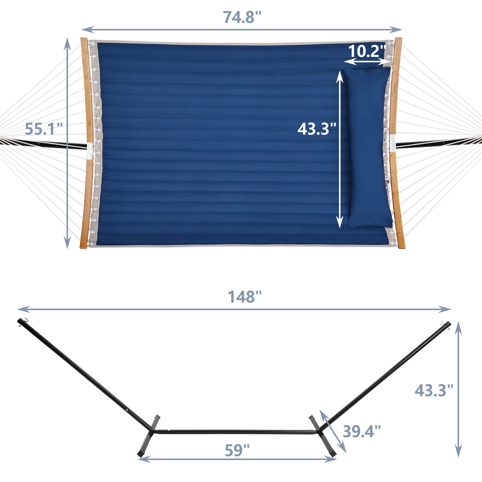 SUPERJARE Curved-Bar Hammock with Stand, 2 Person Heavy Duty Hammock Frame, Detachable Pillow & Portable Carrying Bag, Perfect for Outdoor & Indoor, Navy Blue
