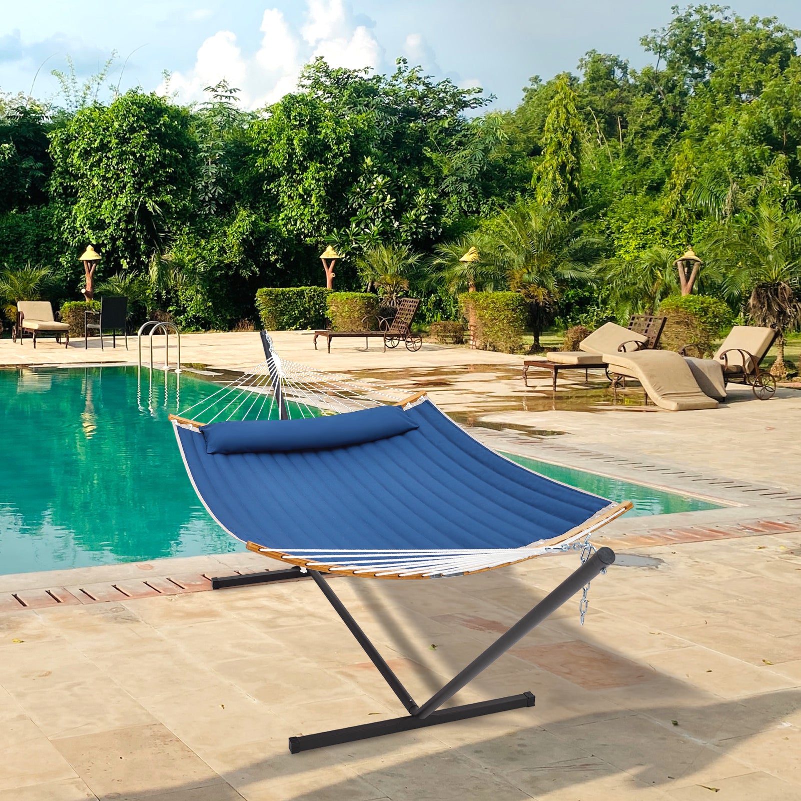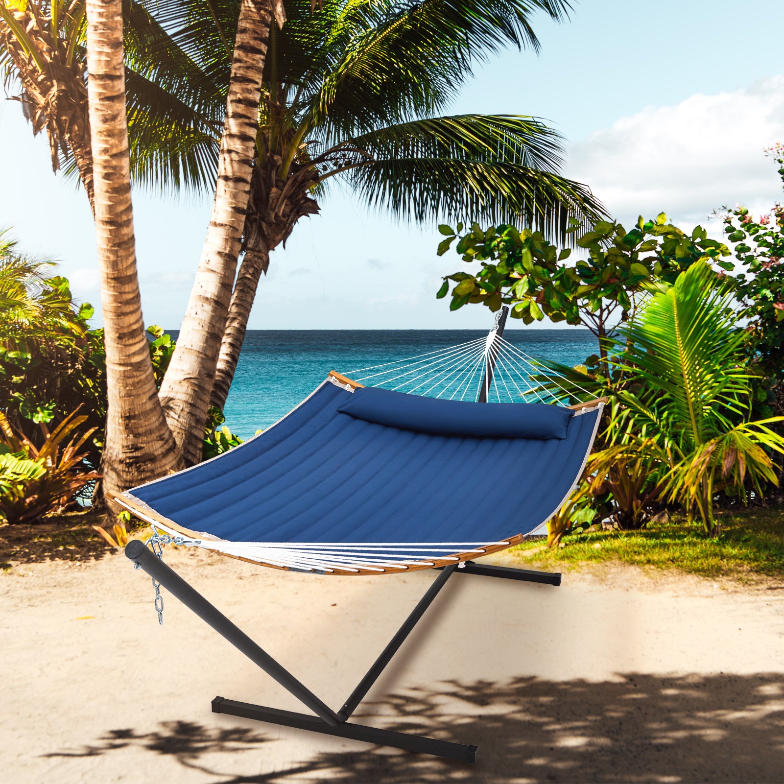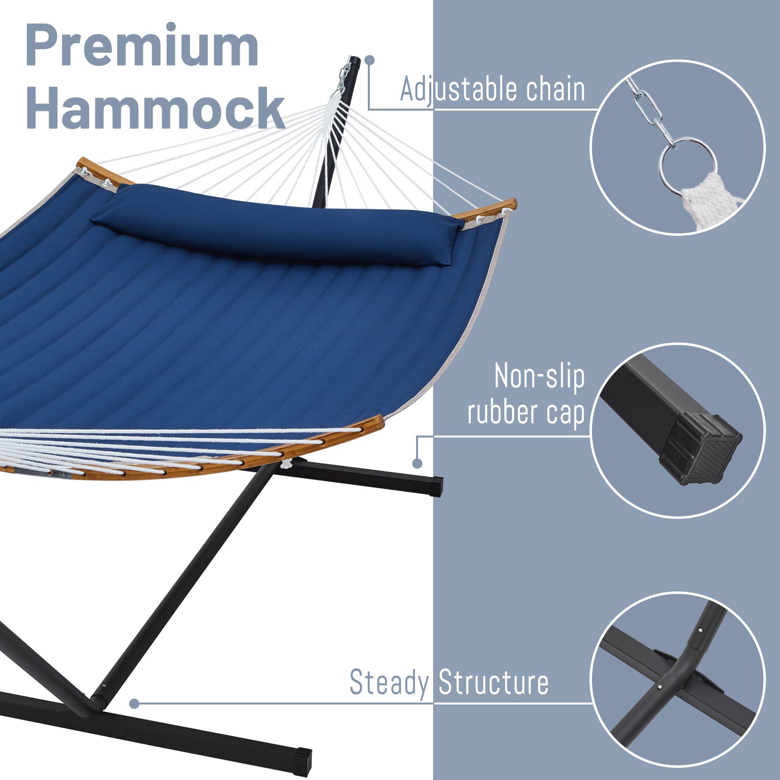 SUPERJARE Curved-Bar Hammock with Stand, 2 Person Heavy Duty Hammock Frame, Detachable Pillow & Portable Carrying Bag, Perfect for Outdoor & Indoor, Navy Blue