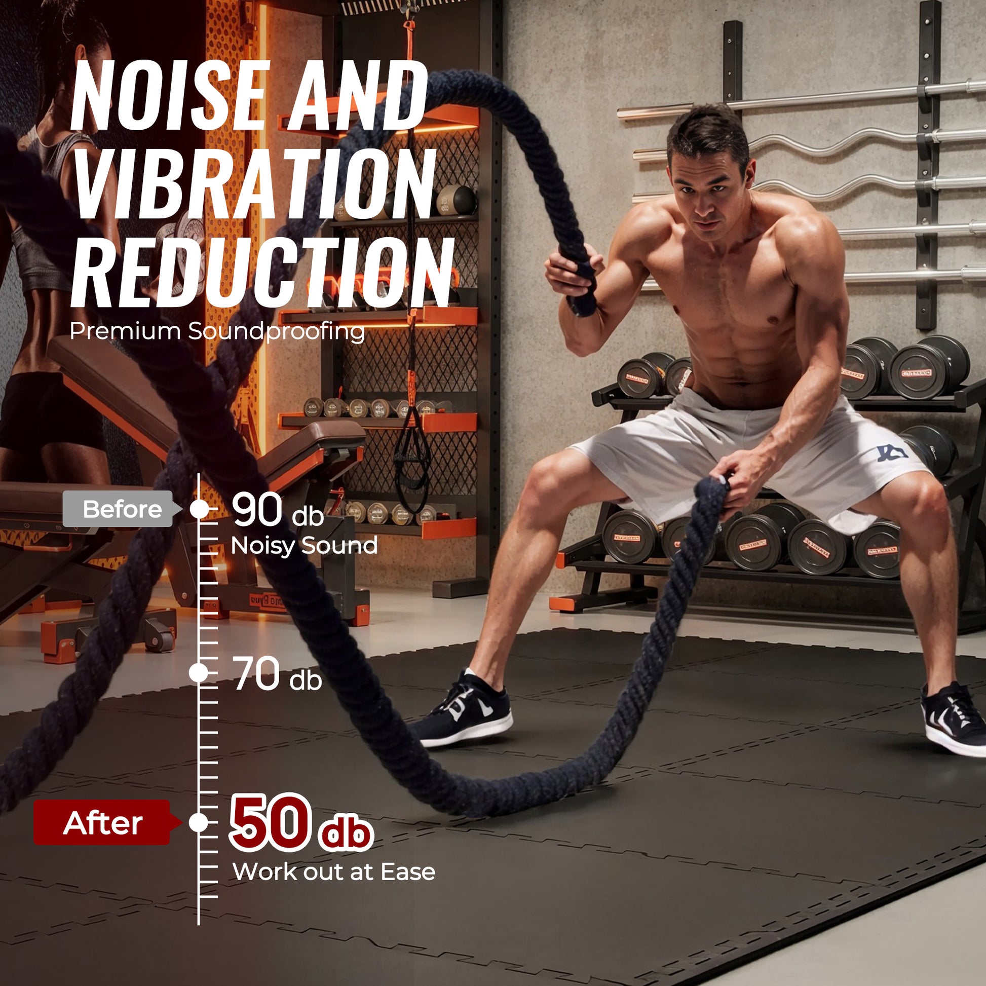 [EXERCISE SOLUTION] - HIIT training? Yoga? Aerobics? You can do more than that! Weightlifting, wrestling, benches, kettlebell, treadmill, and cardio machine. It can effectively reduce noise and vibration, so you can exercise at ease and won't disturb your family and neighbors
