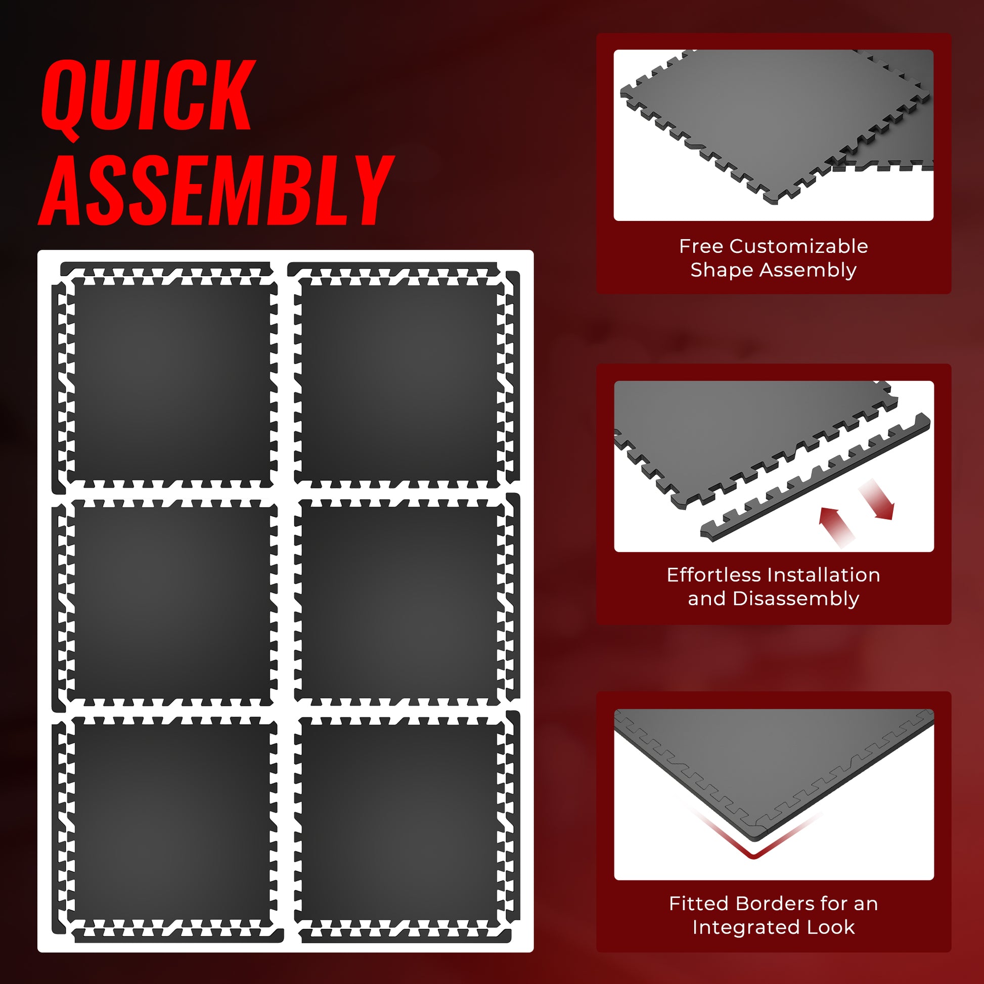 [ALL PLACES USABLE] - Where you need it, you can put it! This flooring mat is suitable for garage, gym, family fitness room or playroom. Teethed Tiles are easy to interlock or detachable. This mats can be moved or extended as needed
