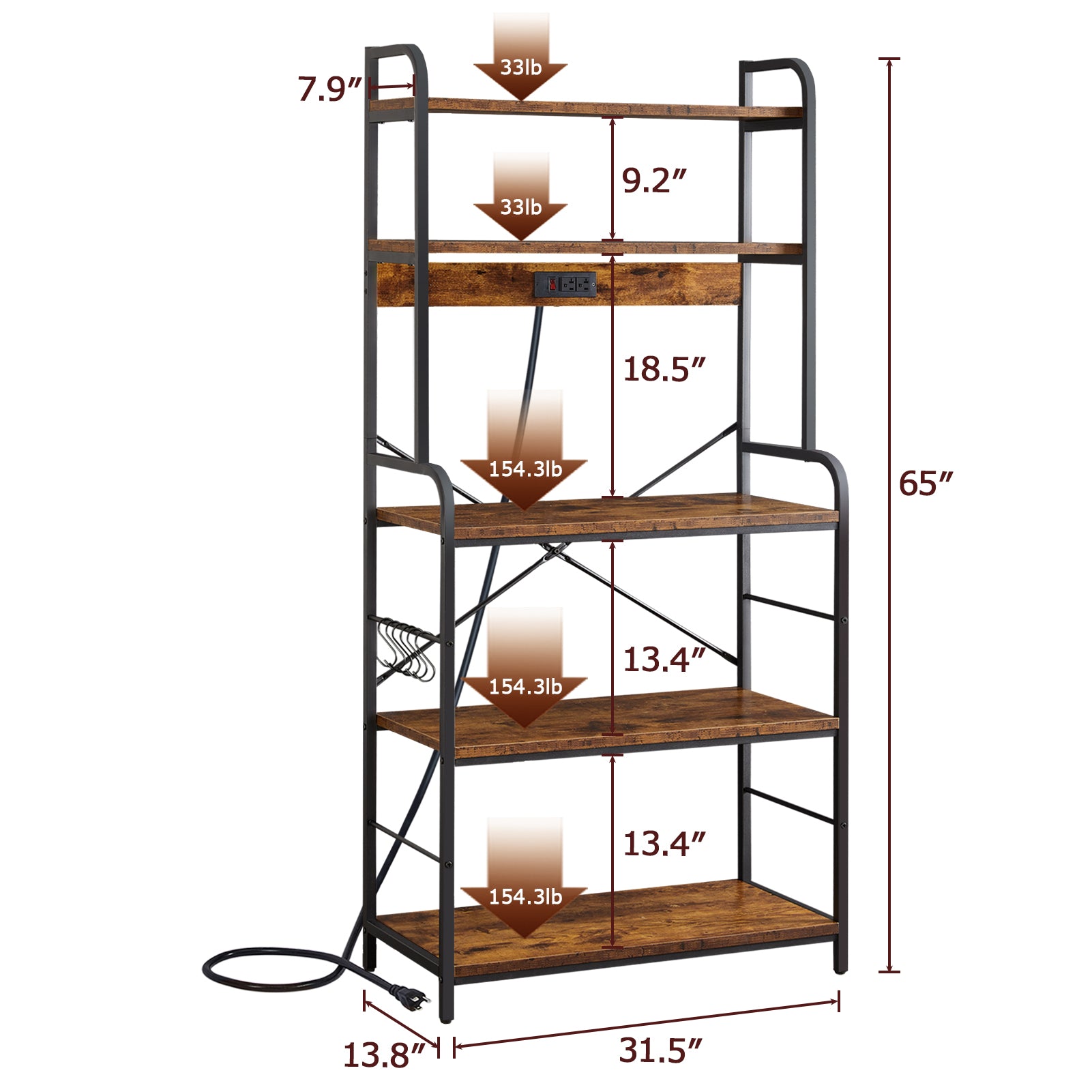 SUPERJARE Kitchen Bakers Rack with Power Outlet - Rustic Brown, 80922FC