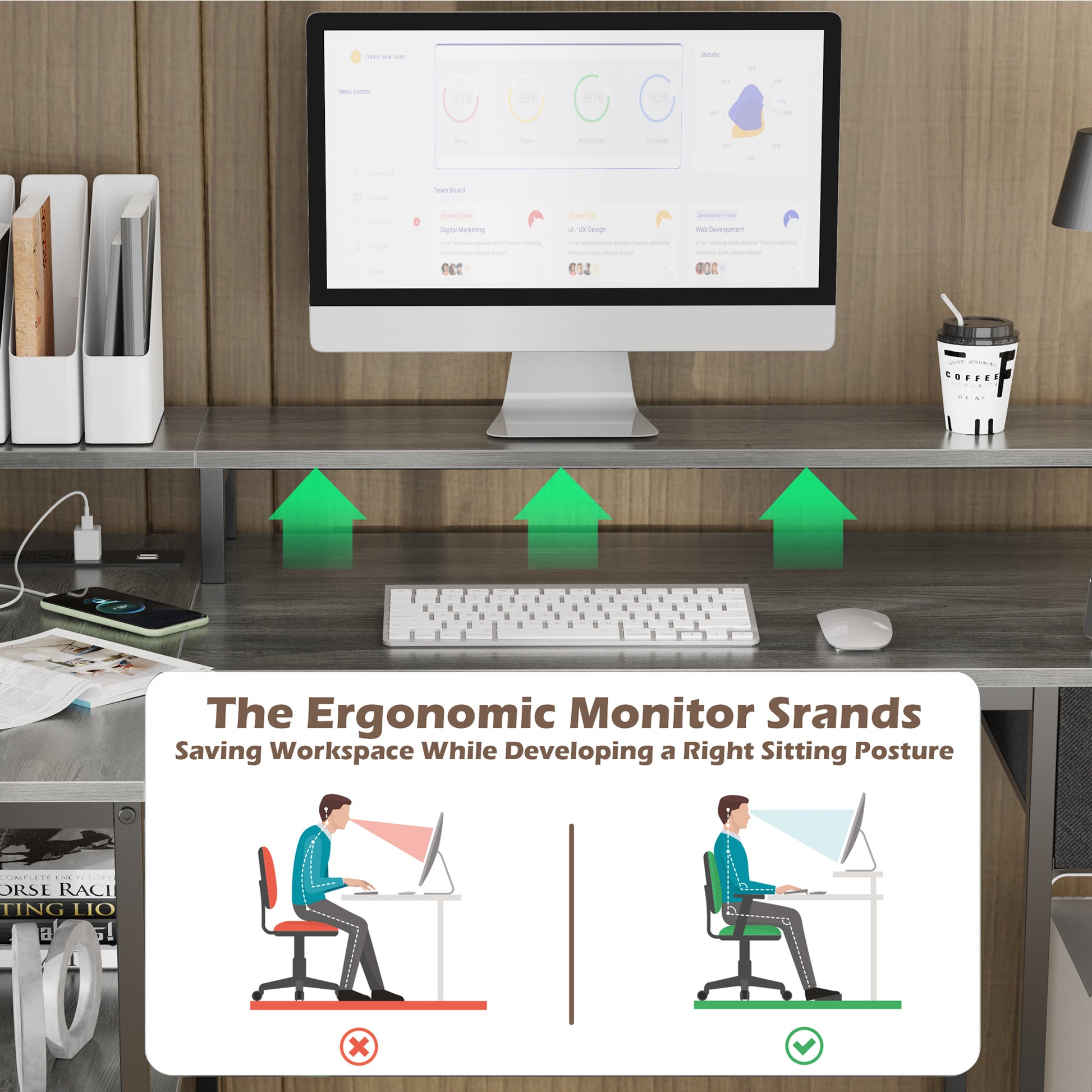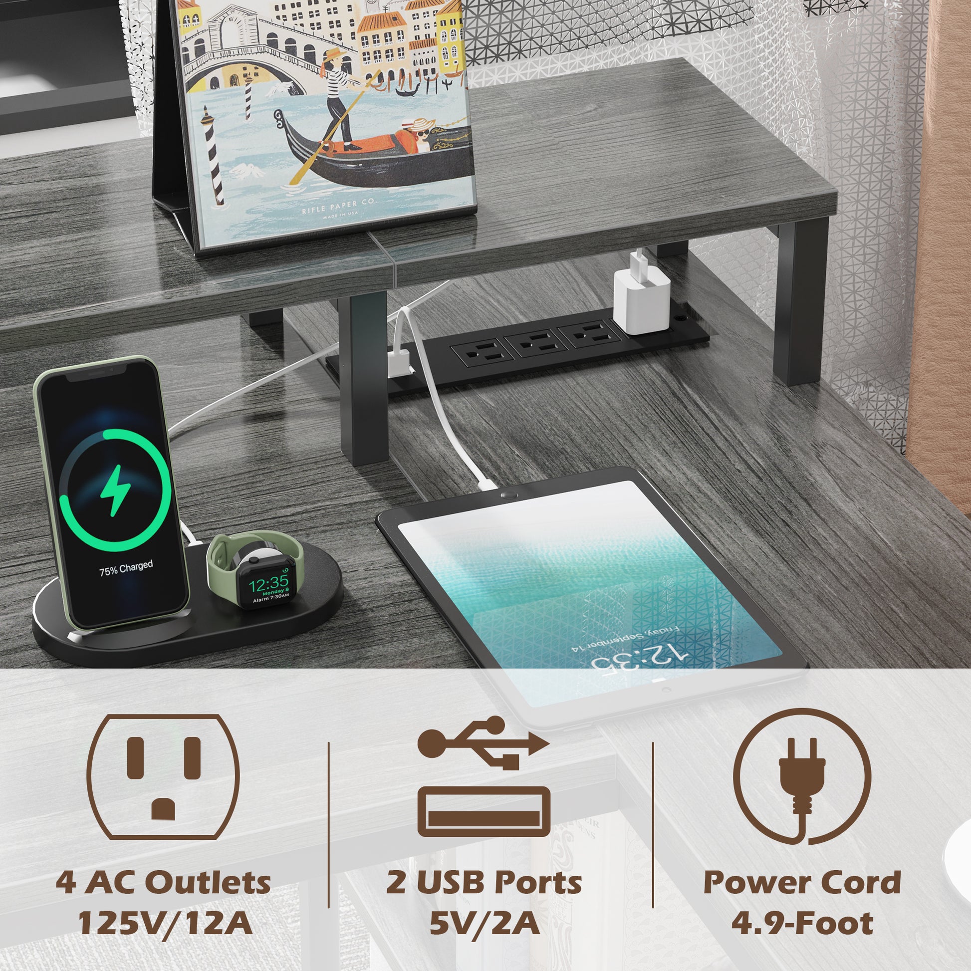 - 【POWER STRIPS & MONITOR SHELF】This small computer desk is equipped with 4 Standard Plug Outlets & 2 USB Ports, which can easily charge phones laptops, gaming gear and other office devices. Monitor stand on the desktop elevates your line of sight, allowing you to maintain proper sitting posture and protect your cervical and spinal health.