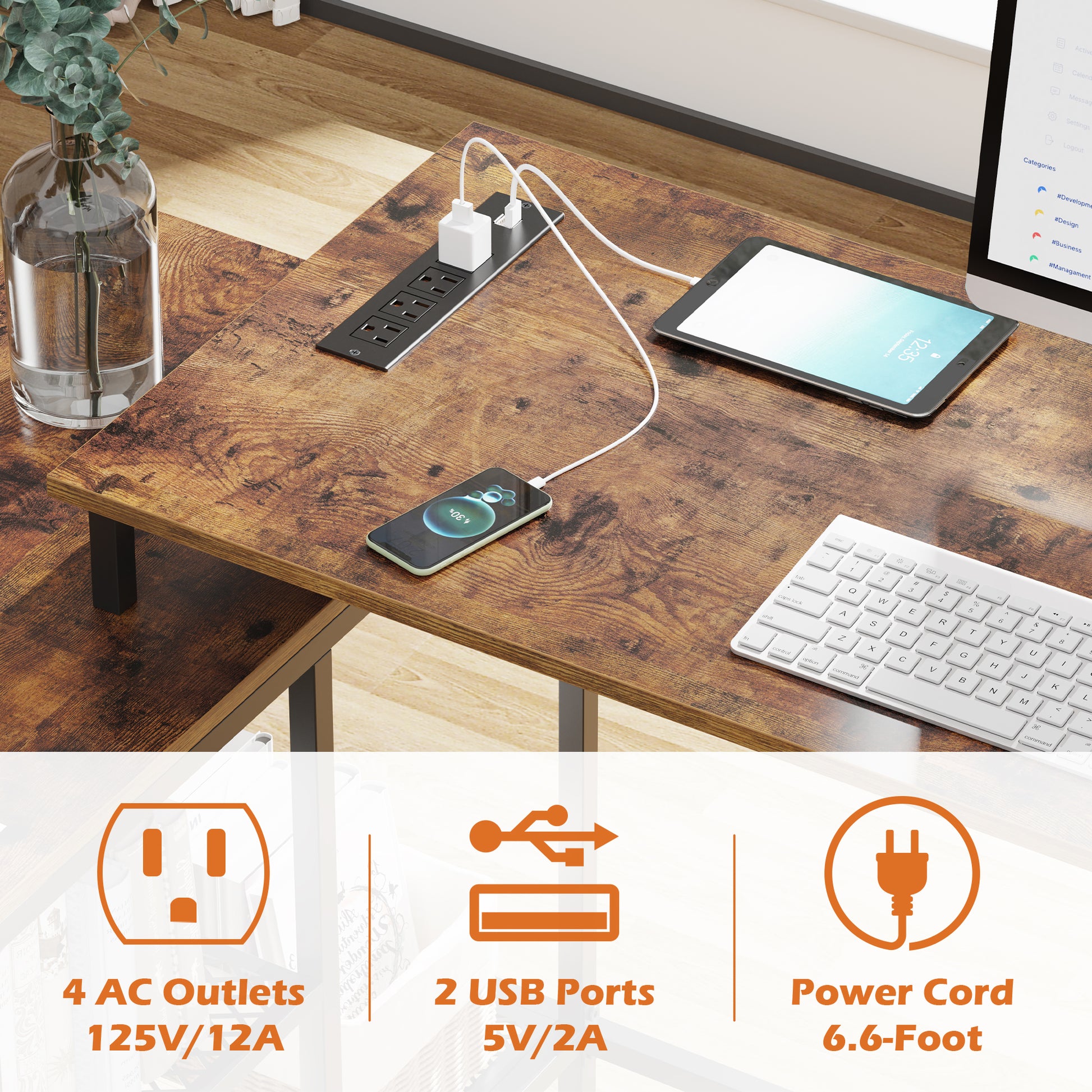 - 【COMPUTER DESK WITH POWER OUTLETS】This computer desk is equipped with 4 Standard Plug Outlets & 2 USB Ports, which can easily charge phones laptops, gaming gear and other office devices, providing a great convenience to your life when you are working or playing games.