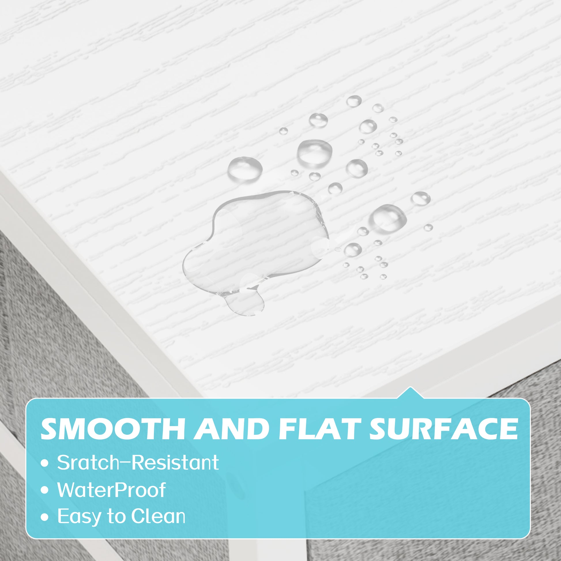 - 【COMPUTER DESK WITH DRAWERS】Lots of leg room. The desktop on the side can be used for printers and so on. 3 fabric drawers help store files, stationery and other privacy items. The grid bookshelf under the desk allow you to store unlimited office supplies and documents. Super practical design!