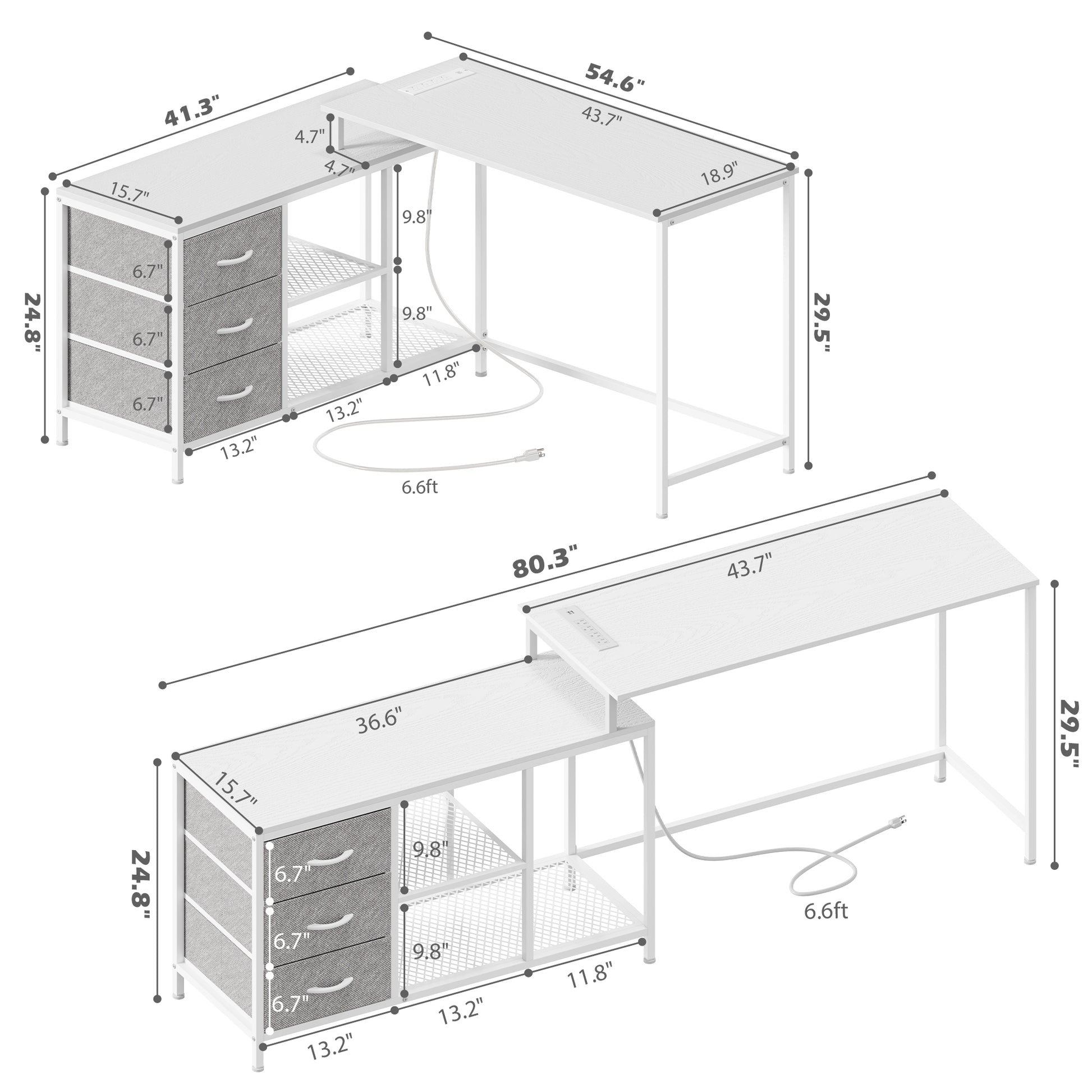 SUPERJARE L Shaped Desk with Power Outlets, Drawers & Shelves, White, 7944WC