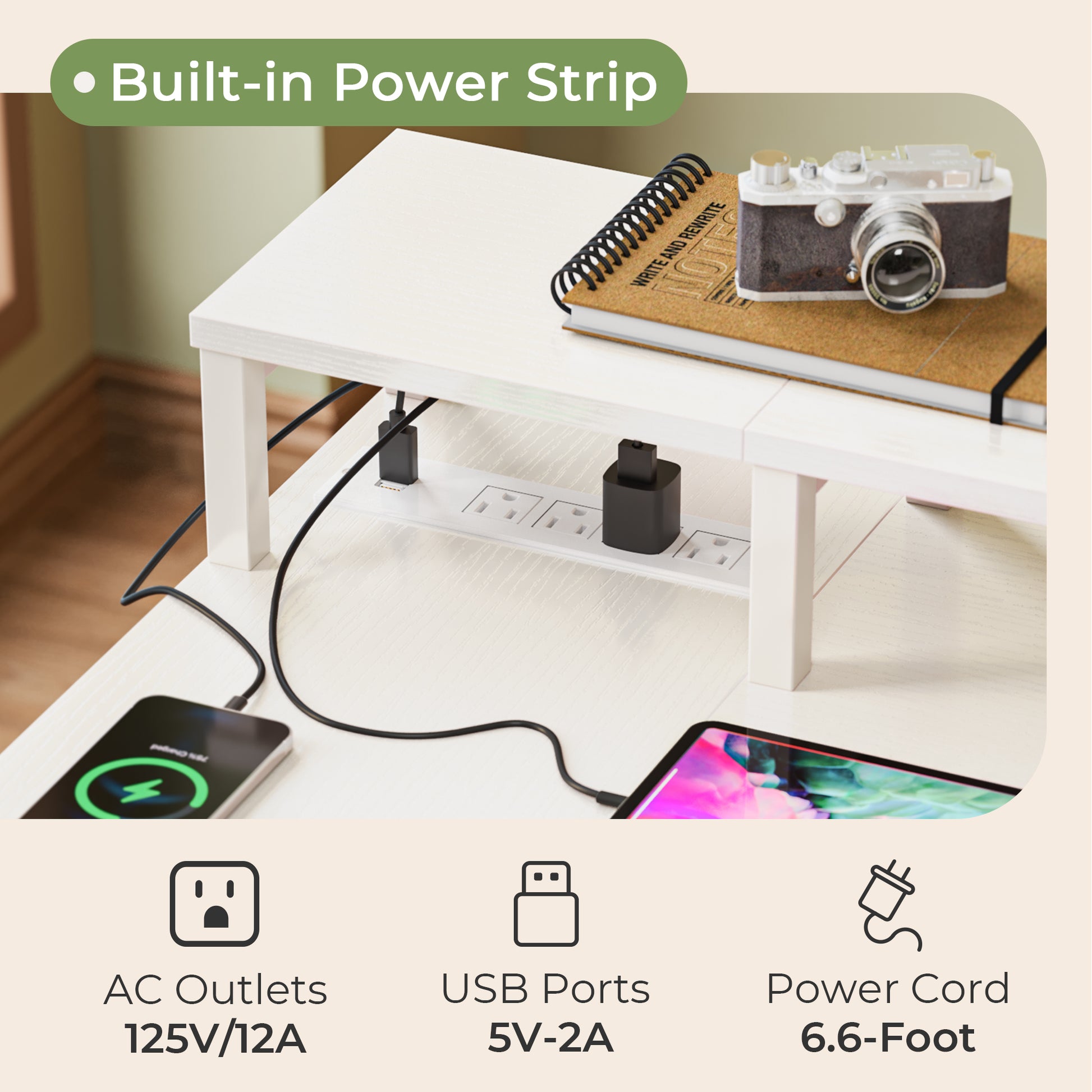 - 【POWER STRIPS & MONITOR SHELF】This small computer desk is equipped with 4 Standard Plug Outlets & 2 USB Ports, which can easily charge phones laptops, gaming gear and other office devices. Monitor stand on the desktop elevates your line of sight, allowing you to maintain proper sitting posture and protect your cervical and spinal health.
