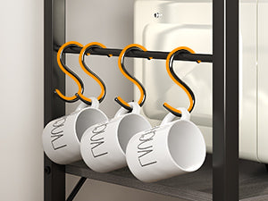 - 【Ample Storage】: Whatever kitchen appliances you have, you can find suitable places on this kitchen storage rack. 10 open storage cubes, wire basket, 12 S-shaped hooks, large and functional enough to be a home for spice bottles, pots, dishes, microwave, rice cooker, spoons ...