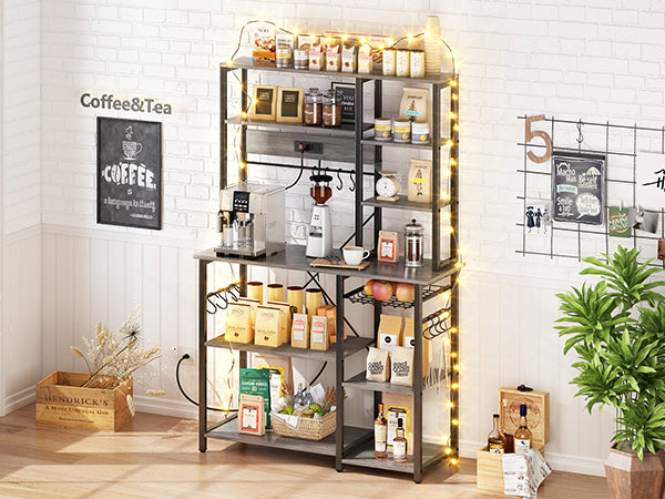 SUPERJARE Large Bakers Rack with Power Outlets, 6-Tier Microwave Stand, Coffee Bar with 12 S-Shaped Hooks, Kitchen Shelf with Wire Basket, 39.3 x 15.5 x 66.9 Inches, Charcoal Gray Visit the SUPERJARE Store