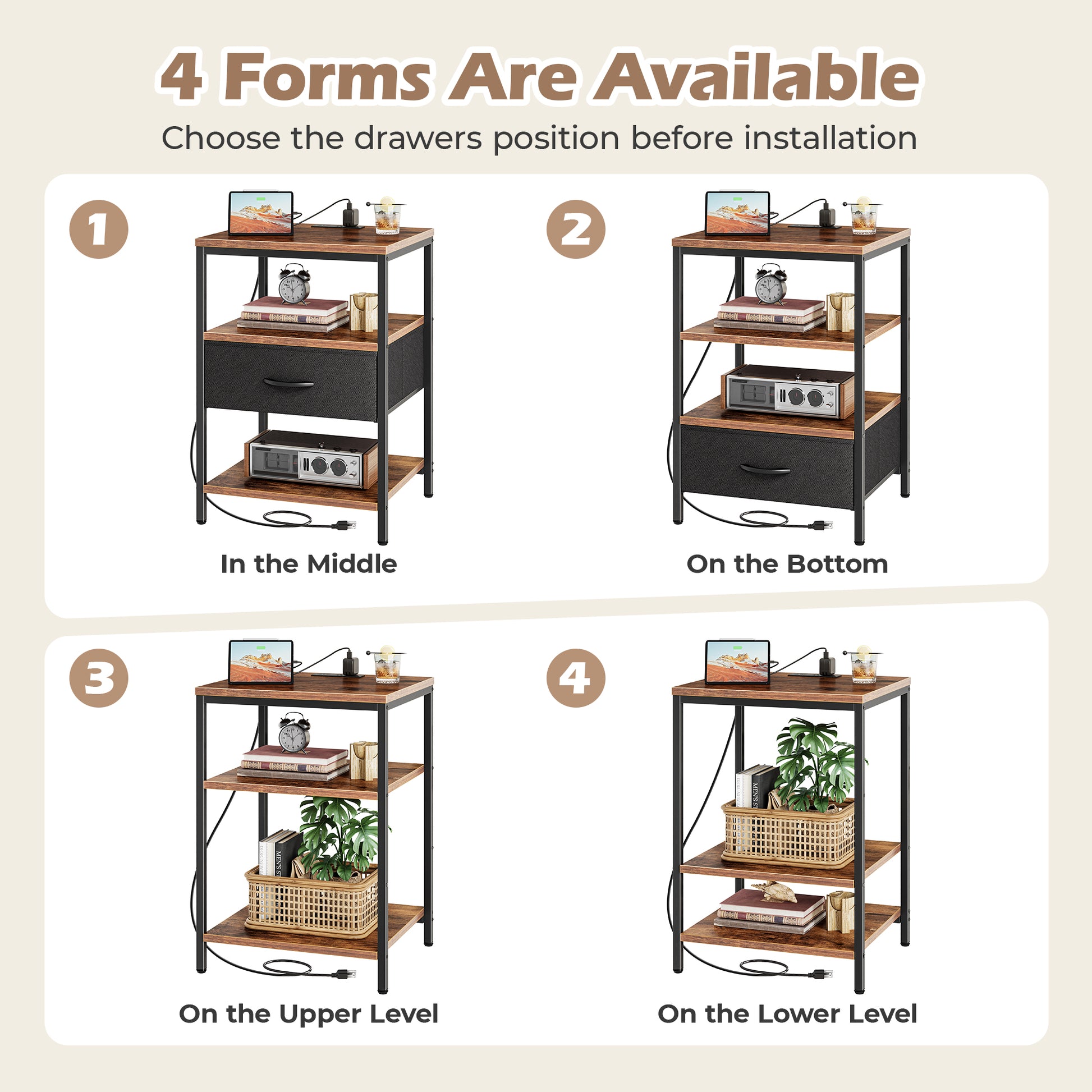 - 【Effortless Assembly Experience】Forget the hassle of complicated furniture setup. This charging nightstand comes with straightforward instructions, clearly labeled parts, and all the tools required. You'll have it assembled quickly, enhancing your space with its practicality and charm