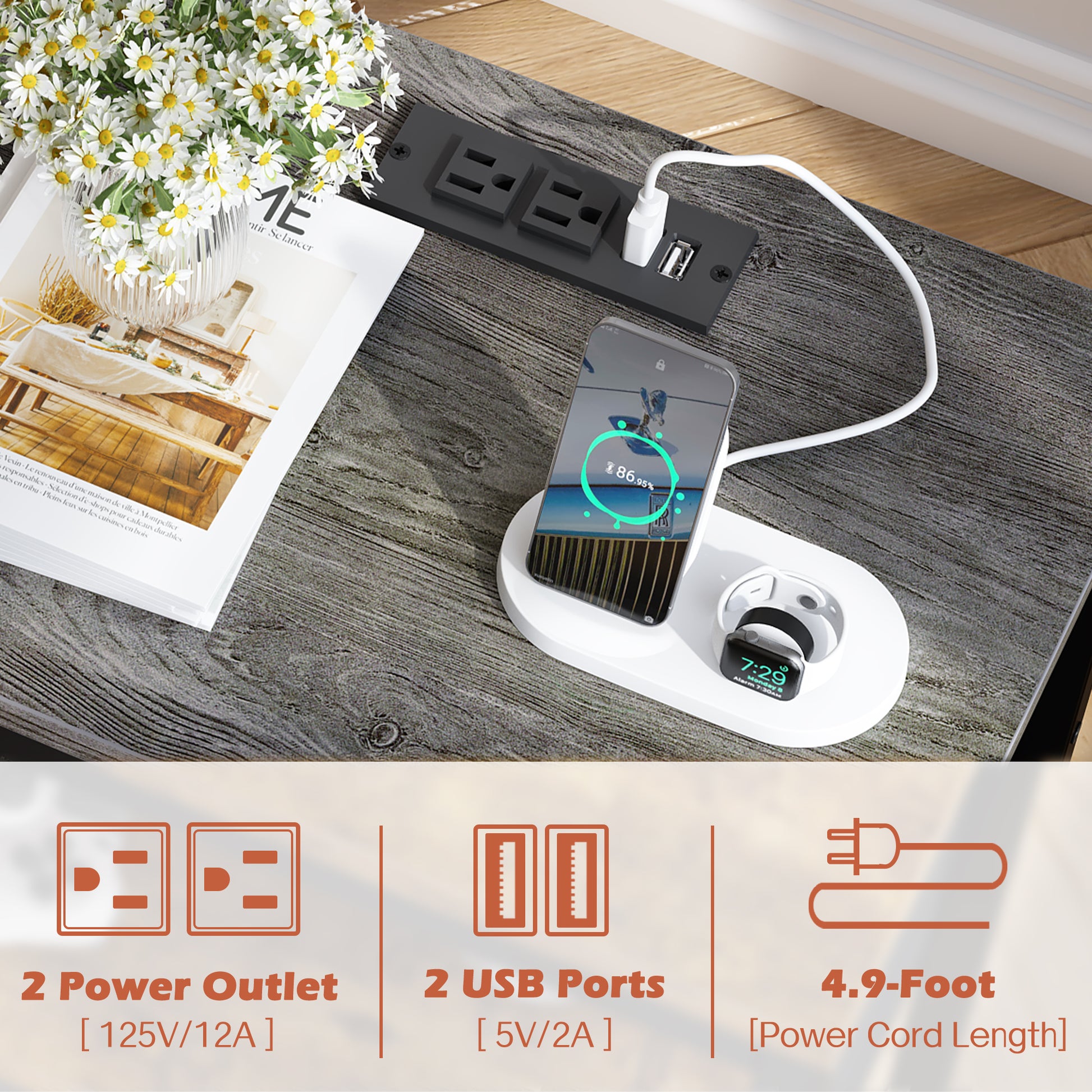 - [Charging Is Super Easy]: 2 USB ports & 2 AC outlets are on the nightstand for bedrooms. Imagine plugging in your lamp, phone or watch before sleep, power is just within your reach, then be happy to greet the morning with fully charged devices