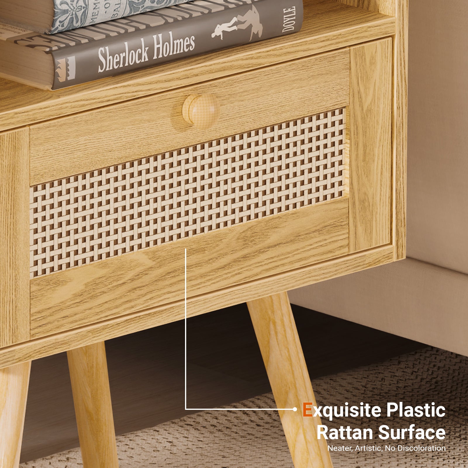 - [Fresh and Elegant Style]: PE rattan design on the drawer surface brings an irresistible and attractive boho vibe to your space