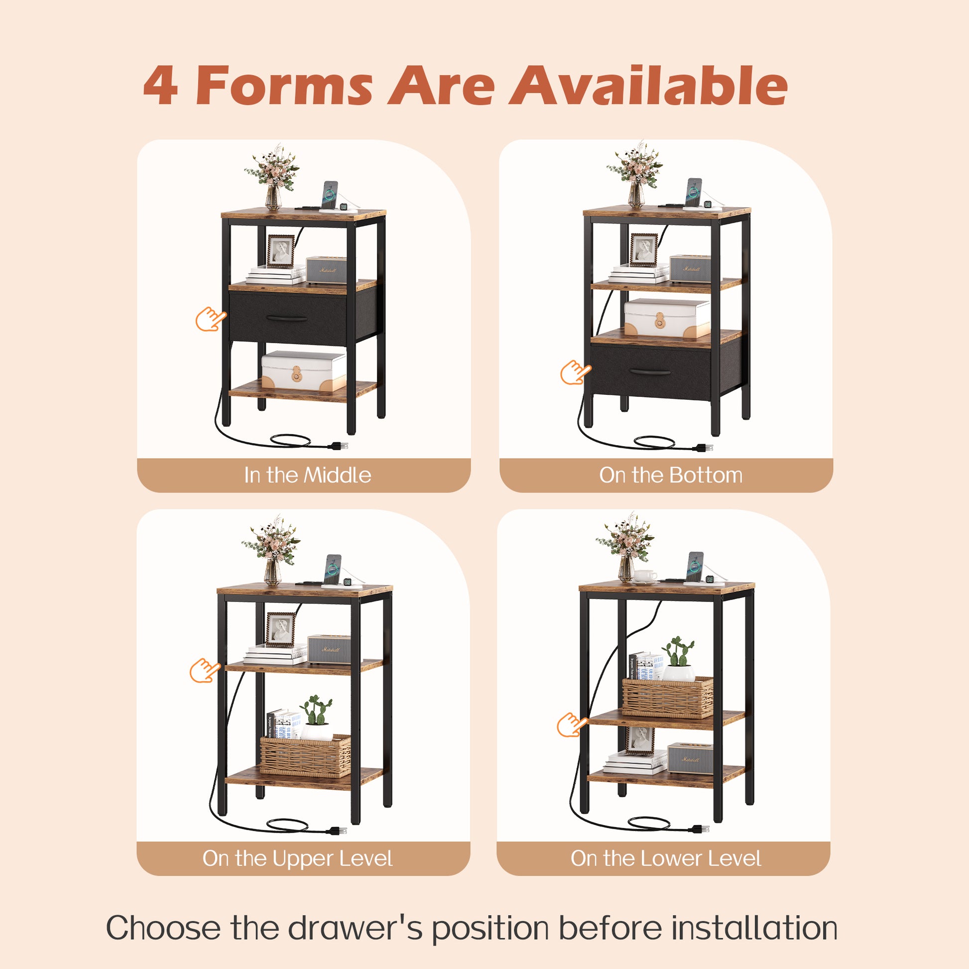- [Fabric Drawer Install Up or Down]: 2 install positions of the drawer are available, you can install it for needed storage heights. 3 storage shelves and 1 fabric drawer on the night stand for bedroom are surely enough to store various bedside items
