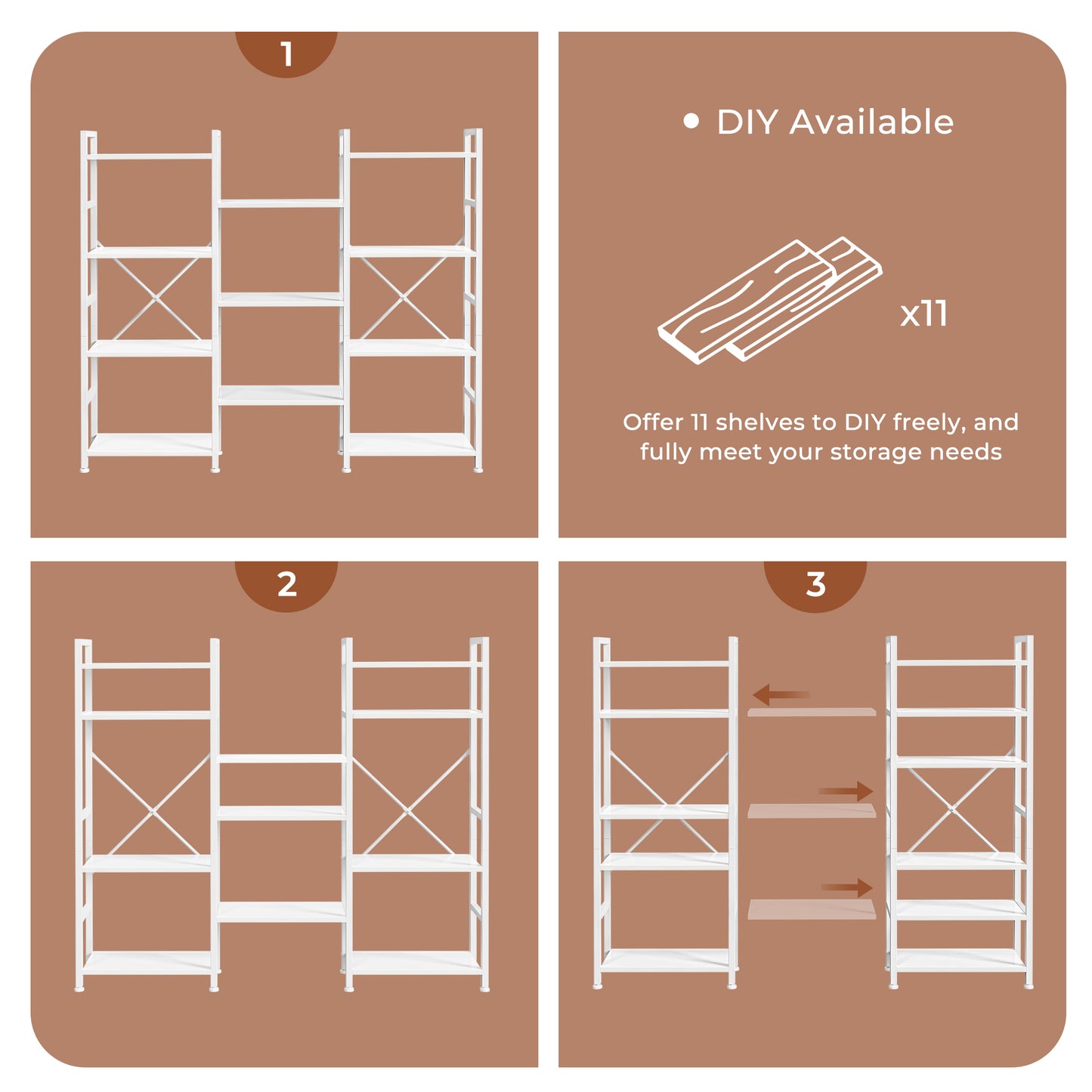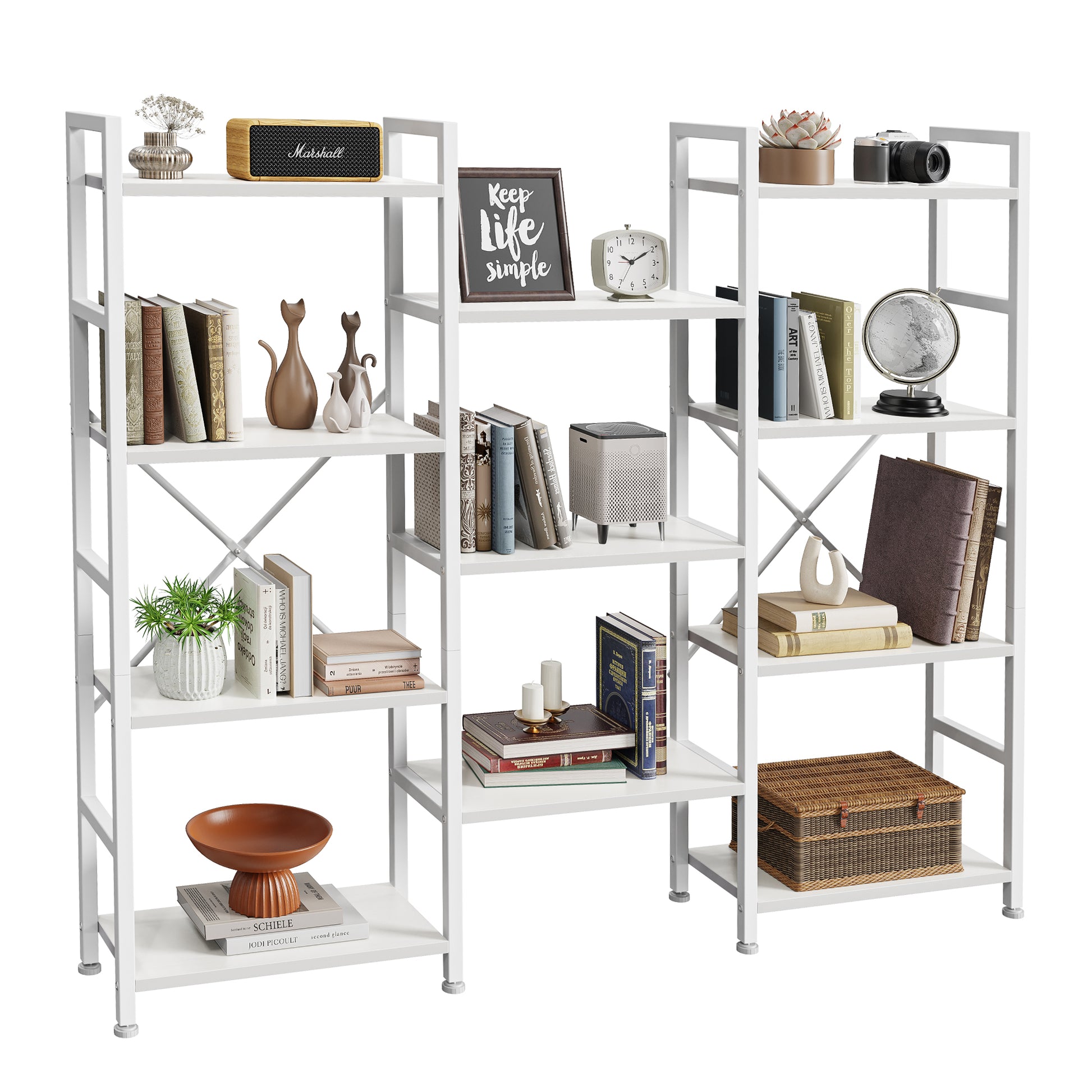 SUPERJARE Triple 4 Tier Bookshelf, Bookcase with 11 Open Display Shelves, Wide Book Shelf Book Case for Home & Office, White