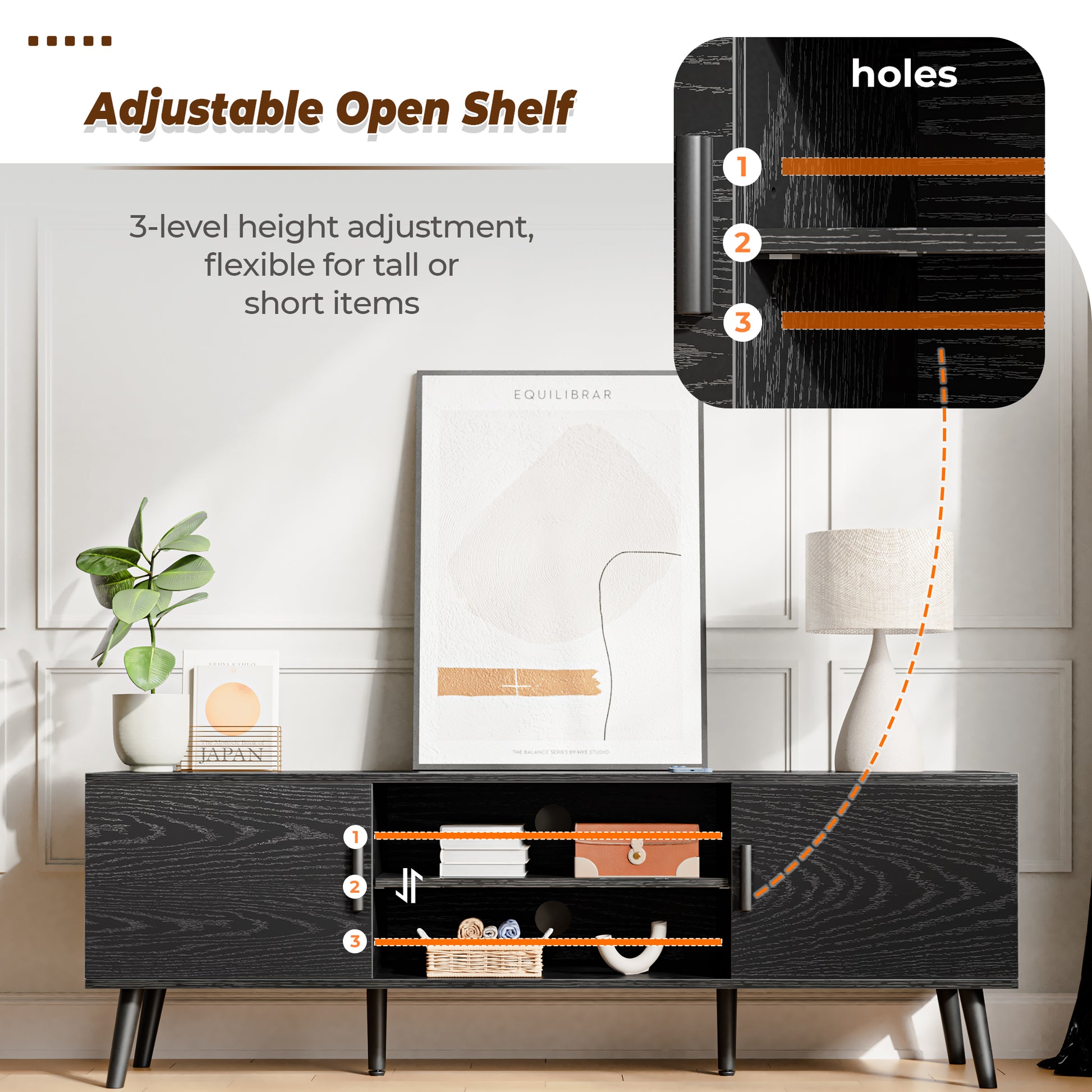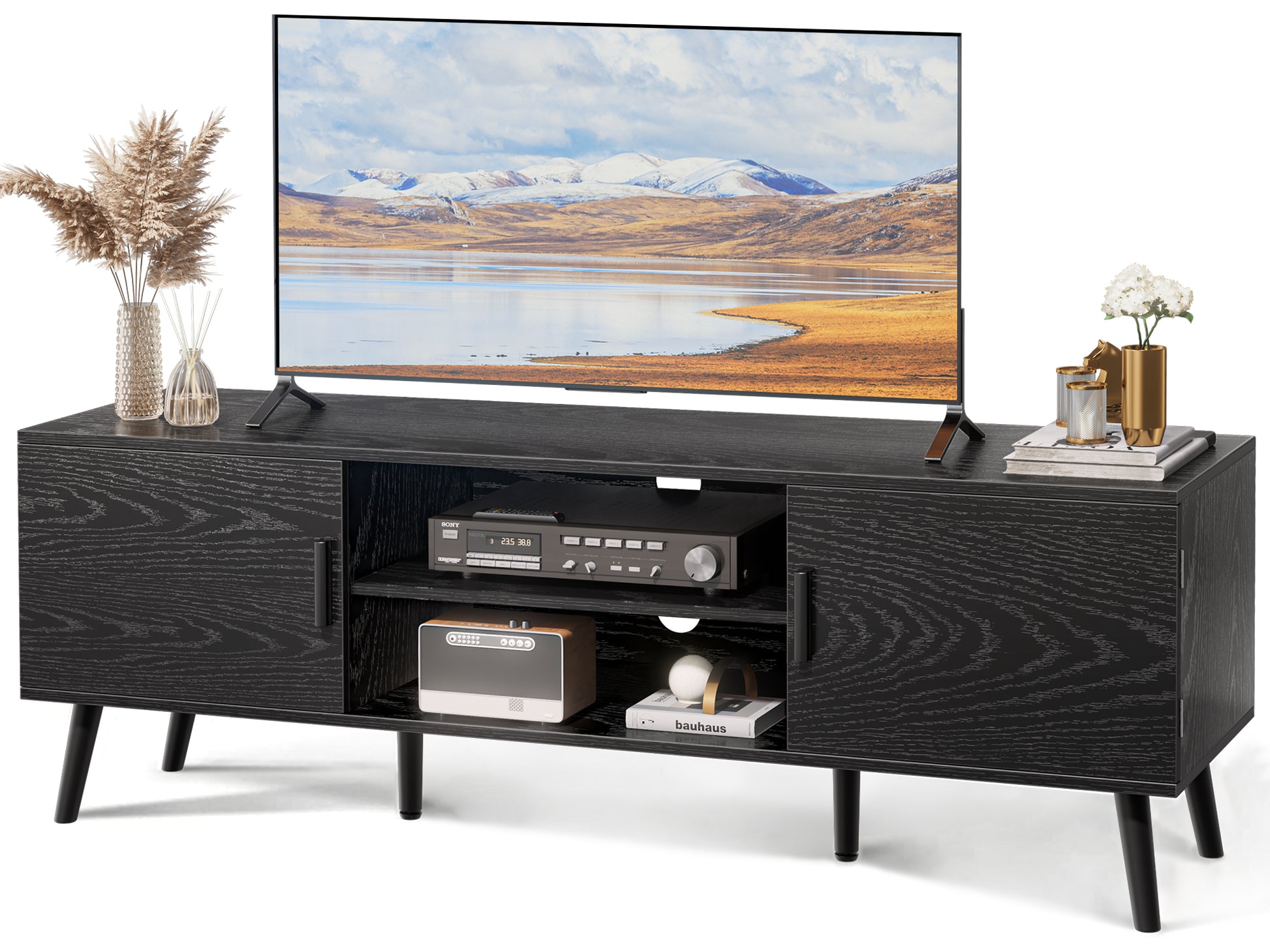SUPERJARE TV Stand for 55 Inch TV, Entertainment Center with Adjustable Shelf, 2 Cabinets, TV Console Table, Media Console, Solid Wood Feet, Cord Holes, Black