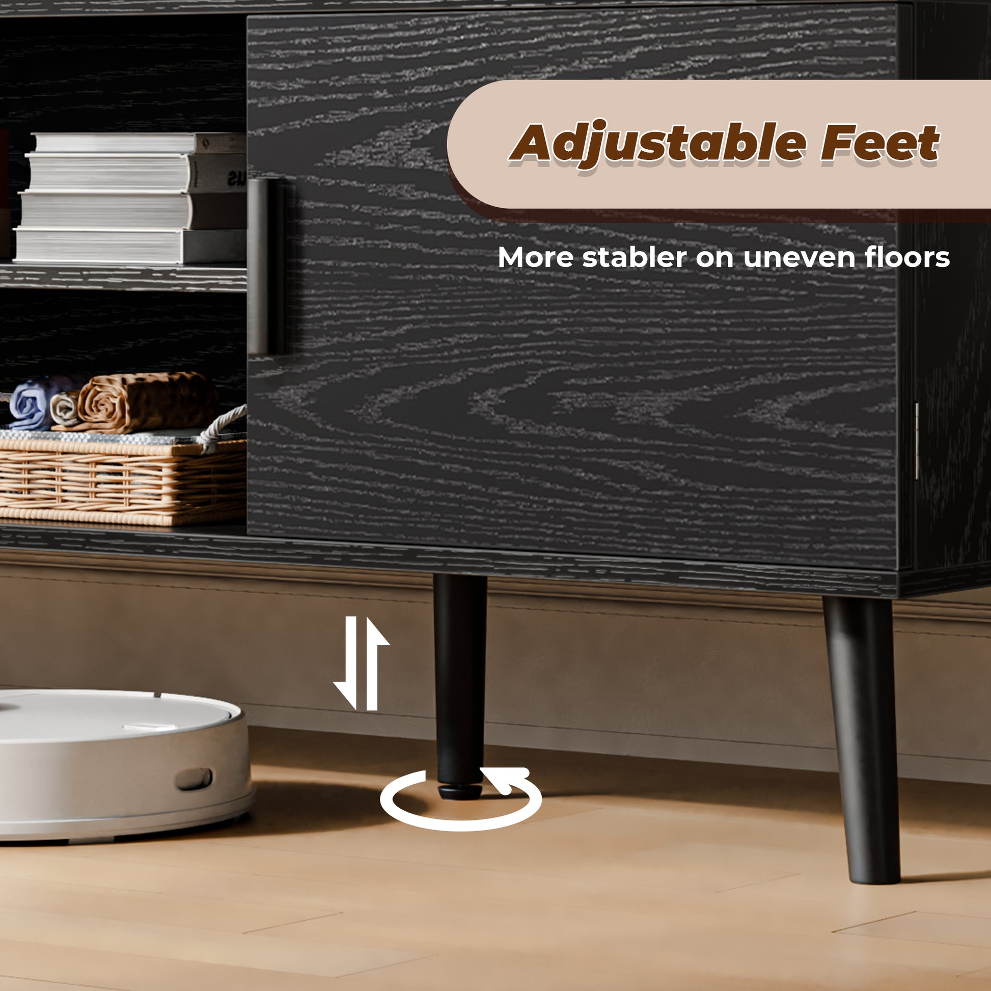 - 【LONG LASTING SUPPORT】 6 solid wood feet give this tv console a strong support (2 middle adjustable feet can be adjusted to keep balance on uneven floors). The overall body adopts sturdy P2 particleboard, so this TV table stand can last for years to come