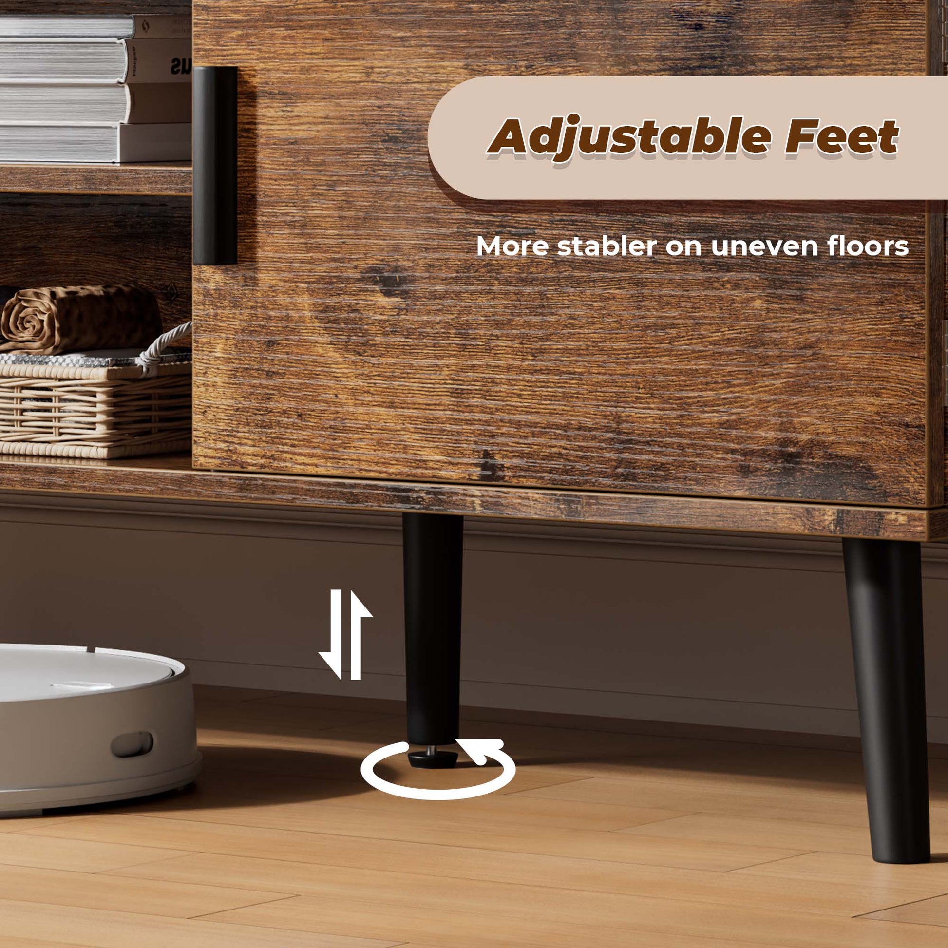 - 【LONG LASTING SUPPORT】 6 solid wood feet give this tv console a strong support (2 middle adjustable feet can be adjusted to keep balance on uneven floors). The overall body adopts sturdy P2 particleboard, so this TV table stand can last for years to come